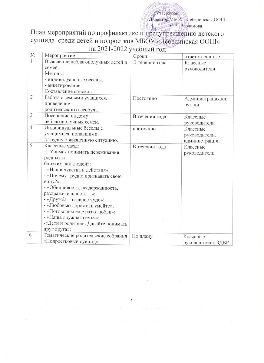План мероприятий по профилактике и предупреждению детского суицида