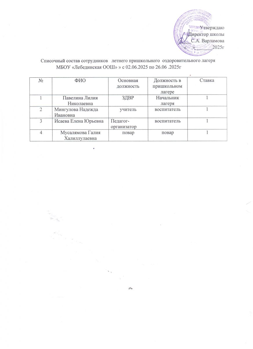 Начальник лагеря- Павелина Лилия Николаевна, ЗДВР