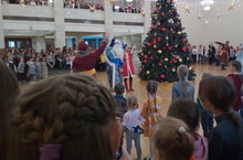 3 января учащиеся школы посетили новогодний спектакль "Вовка в тридевятом царстве" в КДК им.Ленина г.Казани. Ребята посмотрели какие приключения происходили с мальчиком Вовокой в тридевятом царстве. Вместе с героями спектакля, Дедом Морозом и Снегурочкой пели песни и играли в игры у новогодней елки. Новогоднее представление ребятам очень понравилось!