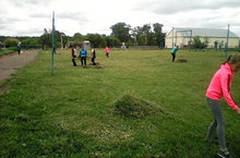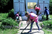 Сегодня воспитанники пришкольнго лагеря поработали на славу: занимались очисткой школьного двора от травы