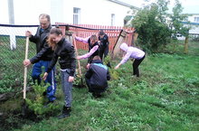 Учащиеся школы приняли участие в Дне посадки леса и высадили у школы саженцы сосен и рябин.