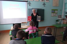 Урок мужества "Книга Памяти" 07.04.2015 Сегодня в школе педагог-организатор Курмышева Л.Н. провела с учащимися 1 класса урок мужества "Книга Памяти". В ходе мероприятия первоклассники узнали о судьбе своих прадедов. Многое почерпнули о войне, День Победы, которой наша страна скоро будет отмечать. Прослушали военные песни, сами их пели. Мероприятие ребятам понравилось.