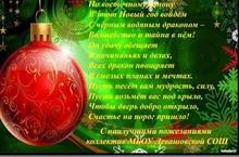 29 декабря 2011 года в школе прошло новогоднее представление для учащихся 1-7 классов с веселыми песнями, танцами, играми, шутками и конечно же, с очаровательными Дедом Морозом и Снегурочкой. Все ребята ушли с праздника с призами и новогодними пакетами.