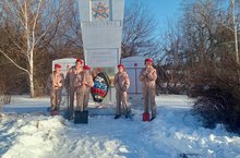 Юнармейцы школы произвели очистку от снега территории памятника павшим в ВОВ.