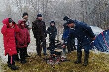 Когда мои друзья со мной» - именном с таким девизом воспитанники лагеря , Юнармейцы ВПК КАСКАД и объединение волейбол руководители Зудин А.Г и Абдуллин М.Г сегодня отправились в поход. Несмотря на снег, высокую влажность и холод, ребята отправились в поход в лес. Общая протяженность маршрута составила около 4 км. В этом походе ребята прошли курс выживания в лесу – они отработали навыки вязания альпинистских узлов, установки палаток, разжигания костра.