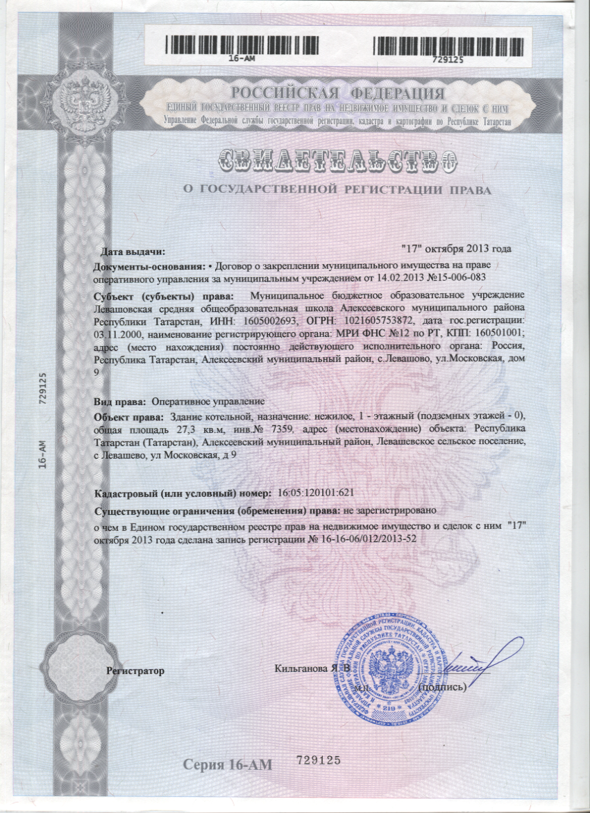 | Адрес: | 422907, Республика Татарстан , Алексеевский район, село Левашево, улица Московская, дом 9 |