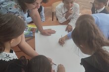 Сегодня на классом часе классный руководитель 4 класса и советник директора с детьми подготовили эскиз эмблемы Орлята России. Дети выбрали своим символом Орлёнка спортсмена. После того , как подготовили эскиз поиграли в игры - почувствуй себя актером.