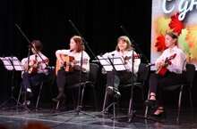 Сегодня инструментальный ансамбль нашей школы «Станция звуков» принял участие в концерте, посвящённом Дню учителя, который проходил в районном доме культуры Алексеевского района. Наши ученики исполнили трогательную песню «Учитель», автором которой является Денис Майданов.