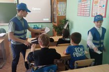Ребята из отряда ЮИД «Перекрёсток» в 3 классе провели беседу на тему: «Мы — пассажиры, обязанности пассажира» и раздали памятки.