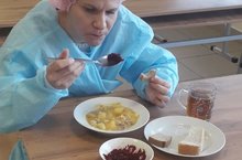 Представитель родительского комитета 1 класса, посетила школьную соловую с целью оценки качества готовых блюд.