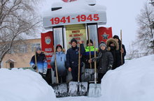 Юнармейцы военно-патриотического "Адмирал" очистили от снега территорию обелиска воинам Великой Отечественной войны.