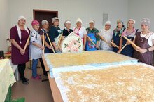 Когда лапша высохнет, продукт расфасуем в контейнеры и передаем в Подлесношенталинский сельсовет. Продукт будет отправлен нашим бойцам в зону СВО.