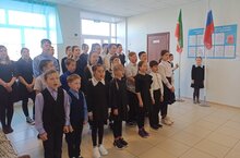 Занятия в школе сегодня в понедельник, начались с поднятия двух государственных флагов_ России и Татарстана и под исполнение двух гимнов