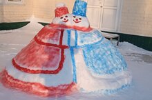 Сегодня учителя вместе с учащимися украсили школьный двор снежными фигурами. Композиционную завершённость придали снежным фигурам яркие краски, которыми разрисовали свои творения.