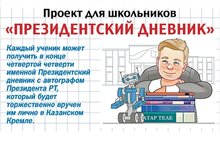 Каждый ученик сможет получить в конце четвертой четверти именной Президентский дневник с автографом Президента Республики Татарстан Рустама Минниханова, который будет торжественно вручён им лично в Казанском Кремле.Как получить один из таких дневников?Отправляйте в редакцию "Комсомольской правды" доказательства своей успеваемости: скриншоты электронных дневников или фотографии/сканы страниц бумажных дневников, где стоят оценки «отлично».Редакция «Комсомольской правды» будет подсчитывать общее количество пятерок, полученных в течение всей четвертой четверти по всем предметам.Победителями станут ученики, у которых будет больше всего пятерок, полученных в течение всей четверти. Школьники разбиваются на 3 возрастных категории (по классам): 2-4, 5-9, 10-11.Когда?Присылайте свои пятерки до 19 Мая 2019 года включительноКуда присылать?kpkzn@yandex.ru или в WhatsApp +7 906 111 88 00Обязательно укажите населенный пункт (город, район) полное Ф.И.О. ученика, школу, класс и контактный телефон совершеннолетнего представителя.Вопросы по телефону (843) 528-20-30 -