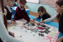 Мәктәптә 8 Март бәйрәменә әзерлек эшләре бара. Укучылар әниләренә котлау открыткалары ясадылар, фотоларыннан газета чыгардылар.