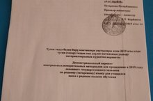 Туган (татар) телдән төп дәүләт имтиханын 1 укучы тапшырачак. 2019 нчы елгы дәүләт йомгаклау аттестациясе эше сочинение элементлары белән киңәйтелгән иҗади биремле изложение формасында тәкъдим ителә. Укучының ни дәрәҗәдә әзер булуын тикшерү максатыннан, мәктәп күләмендә, туган телдә белем бирү мәктәпләре укучылары өчен 2019 нчы елда туган (татар) телдән төп дәүләт имтиханын уздыру материалларының күрсәтмә вариантын кулланып, сынап карау имтиханы үткәрелде. -