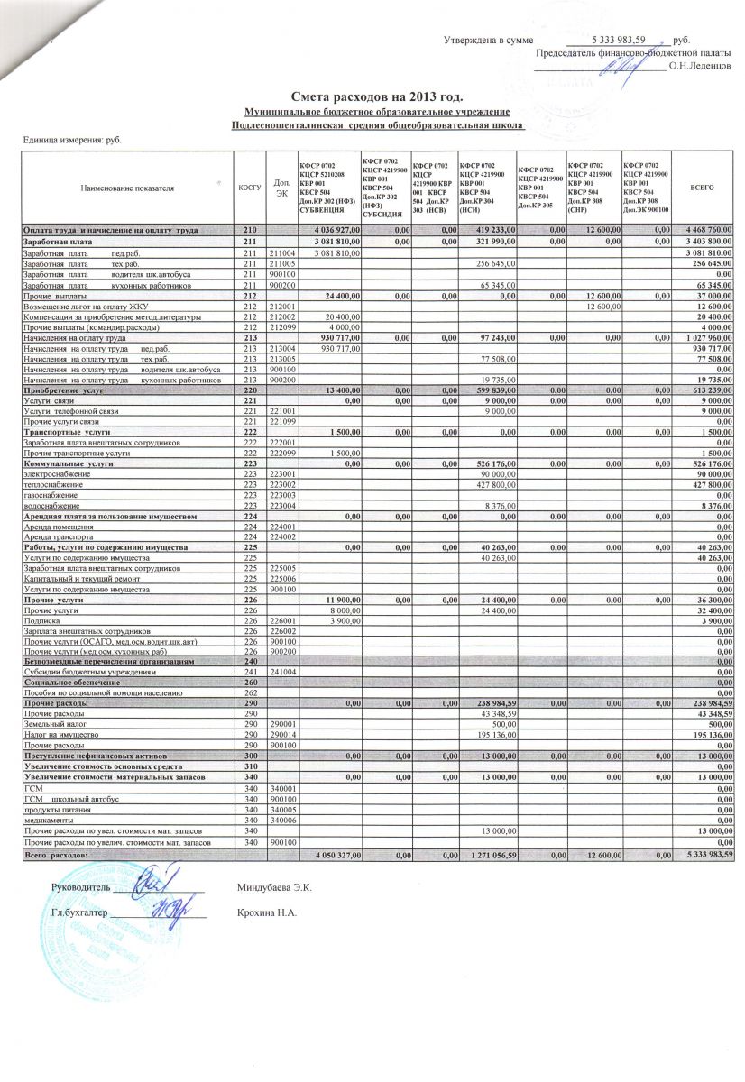 - Смета расходов на 2013 г.