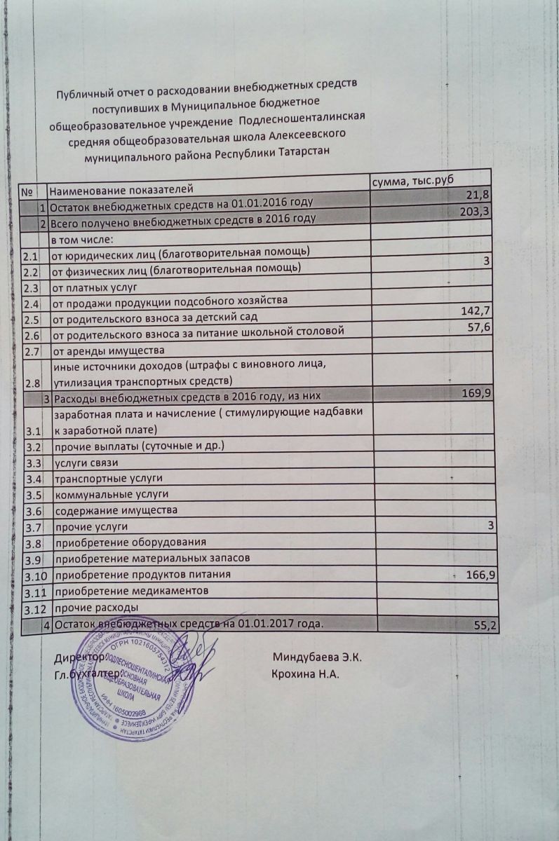 - Публичный отчет о расходовании внебюджетных средств в 2016 г.