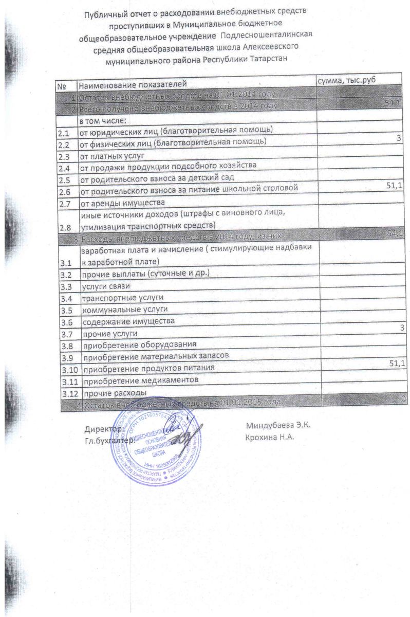 - Публичный отчет о расходовании внебюджетных средств в 2014 г