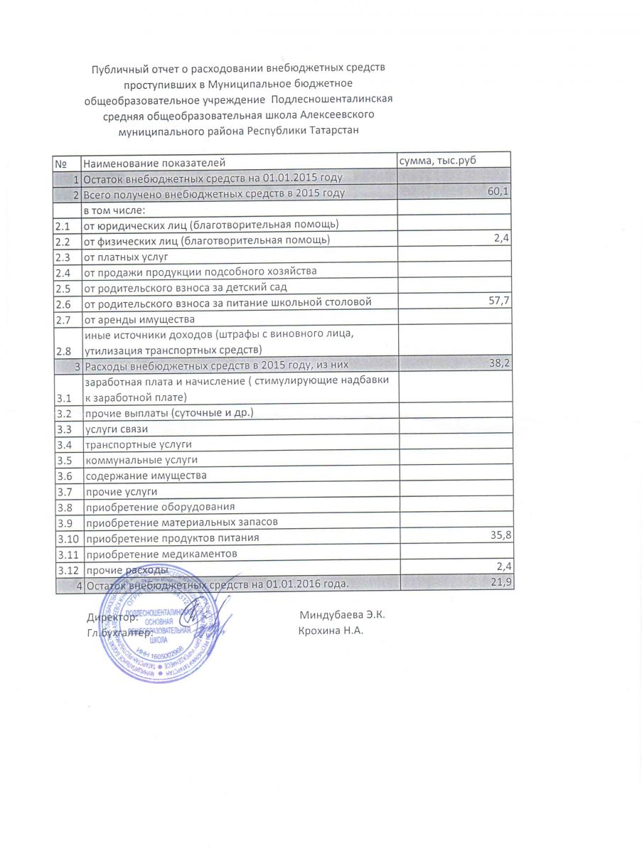 - Публичный отчет о расходовании внебюджетных средств в 2015 г.