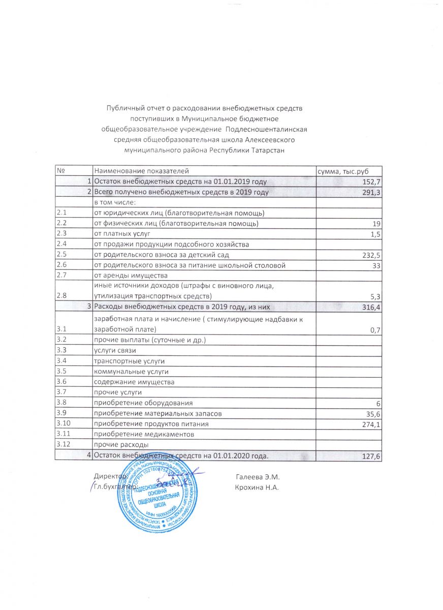 - Публичный отчет о расходывании внебюджетных средств в 2019 г.