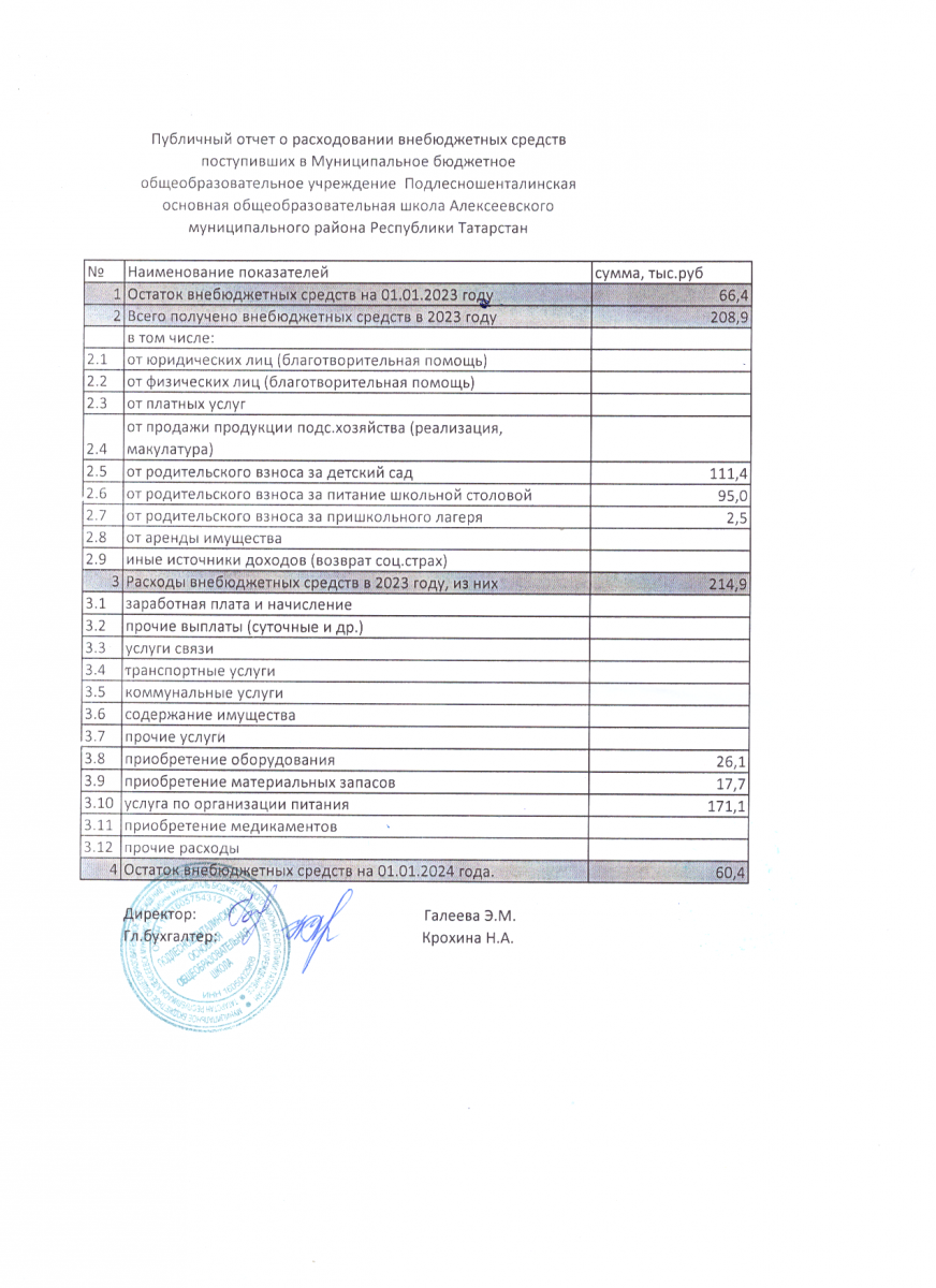 - Публичный отчет о расходывании внебюджетных средств в 2023 г.