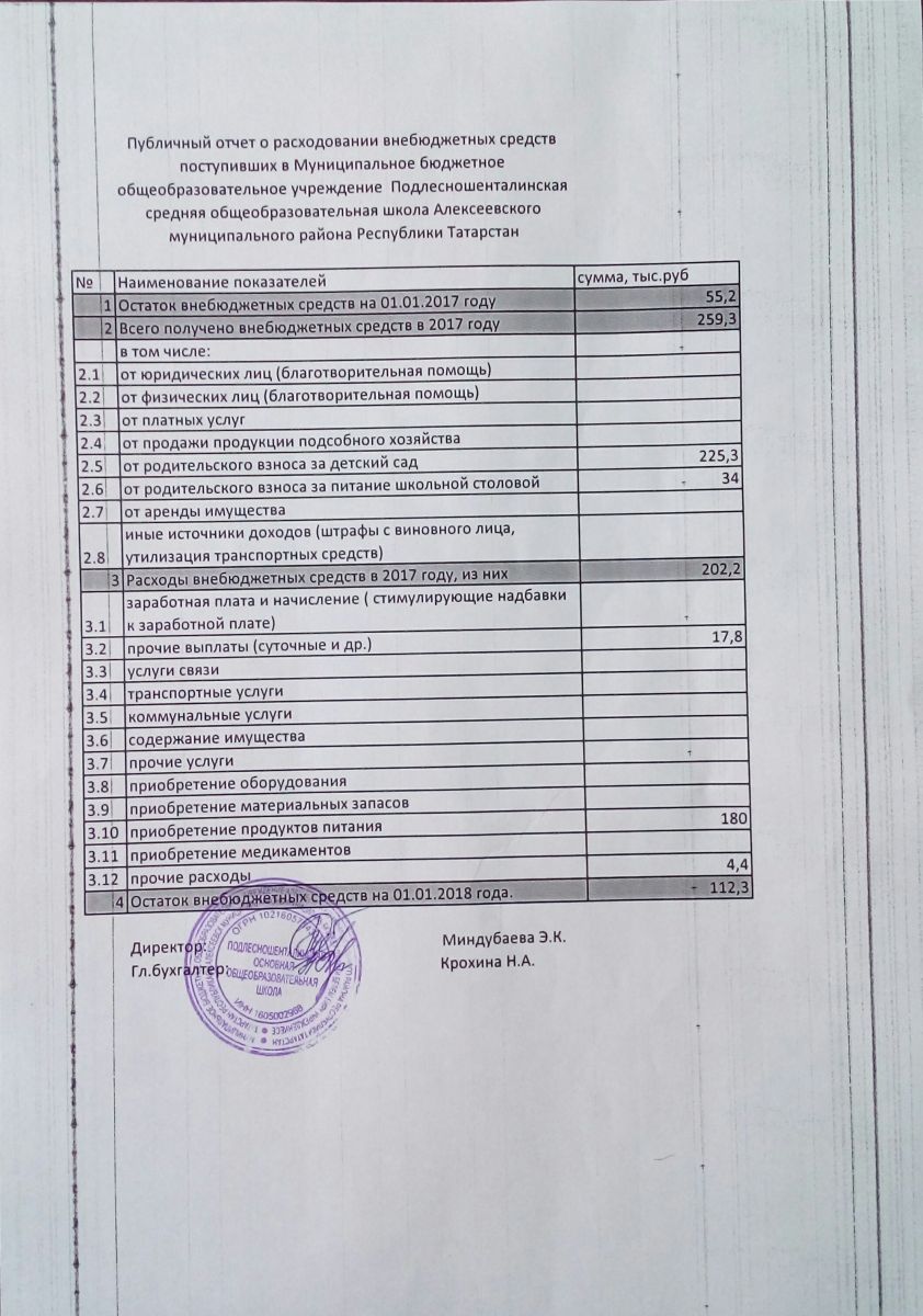 - Публичный отчет о расходовании внебюджетных средств в 2017 г.
