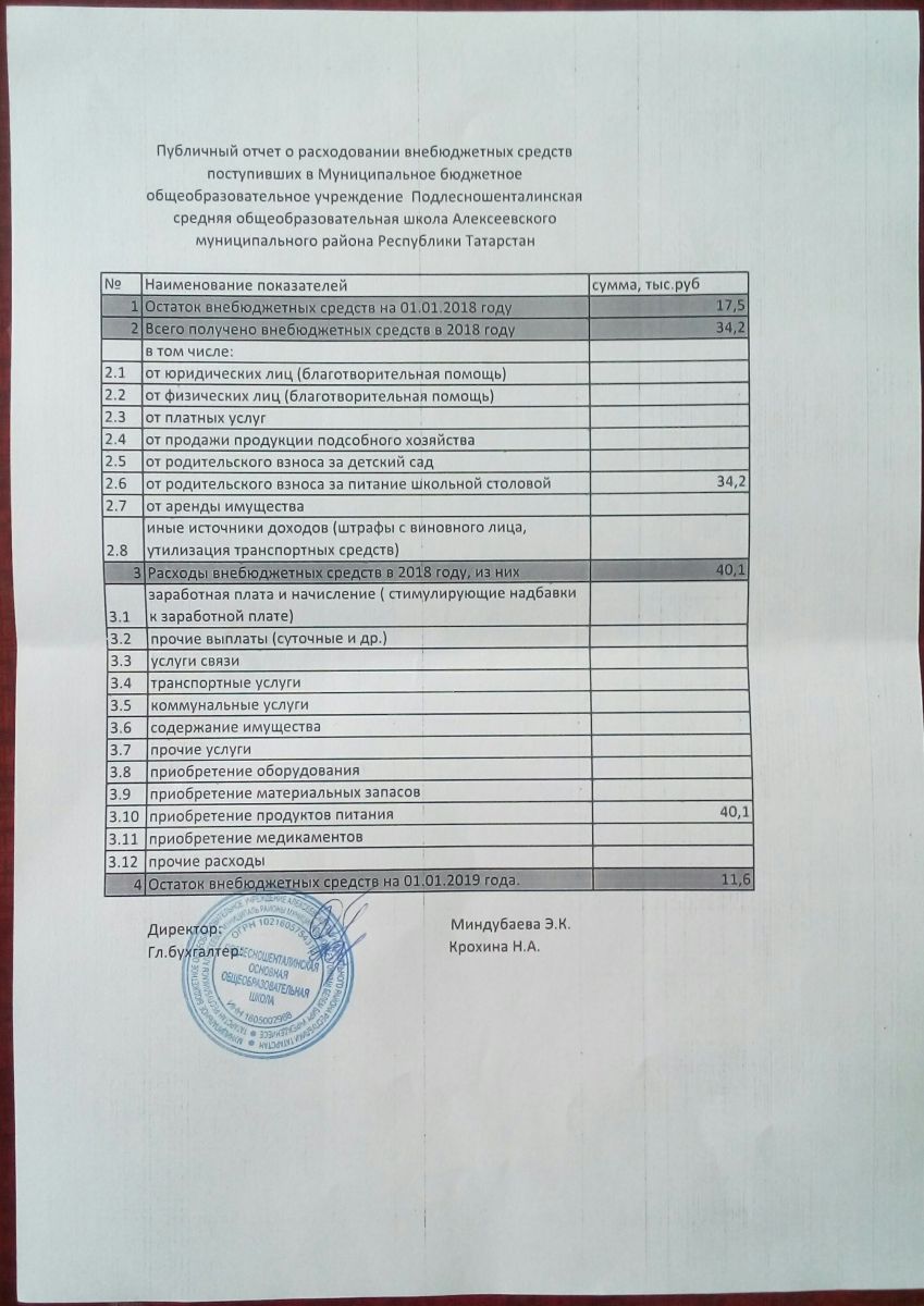 - Публичный отчет о расходывании внебюджетных средств в 2018 г.