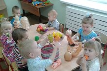 С целью закрепления понятия «фрукты», умения находить названные фрукты среди других в режимном моменте дети первой группы раннего возраста "Лучики" играли в игру «Покормим наших куколок фруктами!» ....