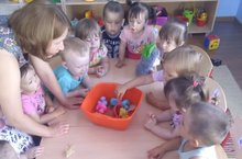 В группе раннего возраста №1 «Затейники» 7 августа в режимном моменте, в совместной деятельности детей и педагога, дети научились пользоваться сачком для вылавливания предметов разной формы и величины из воды.