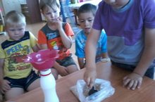 Продолжая знакомство детей со свойствами воды и с целью закрепления знаний о свойствах воды - прозрачность, не имеет цвета и запаха - в средней группе №1 «Солнышко» был проведен эксперимент о текучести воды – фонтанчики.