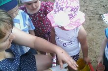 1 августа, с целью знакомства с растительным и животным миром, группа «Капитошки» направилась на прогулку по территории образовательных терренкуров «Мини-поле», «Бабушкино подворье», «Террариум», «Царство грибов», «Подводный мир», «Мир птиц».