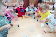27 февраля во второй группе раннего возраста №2 "Радуга" прошло заключительное занятие в цикле экспериментов с водой «Разноцветная вода».