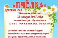 Уважаемые родители! 28 января 2015 года в нашем детском саду состоится ДЕНЬ ОТКРЫТЫХ ДВЕРЕЙ!