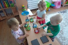 В ходе игровой ситуации с детьми второго года жизни, группы первого раннего возраста «Звездочки» рассмотрели игрушку Деревянный лабиринт. Ребята попробовали передвигать одну бусинку за другой одним пальчиком. Они были увлечены и активны...