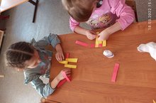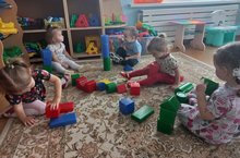 Иң кечкенә “Салават күпере” төркеменә йөрүче балалар төзү материаллары белән уйнарга яраталар. Балалар үзләре яшәгән йортларны, машиналар өчен гаражлар төзиләр. Мондый уеннарда балалар шат, ачык һәм эчкерсезрәк булалар, ә баш миенең аңлы һәм ихтыярсыз эшчәнлеге активлаша.