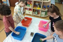 Знакомя детей подготовительной группы «Капитошки» с понятиями «легкий», «тяжелый» был проведен эксперимент «Мой веселый мяч». Детям были предоставлены предметы: камешки, резиновые мячики, бумага и ванночки с водой. Помещая эти предметы в воду, дети наблюдали, что камешки утонули, а бумага и мяч остались на поверхности. Затем они погрузили мяч на дно ванночки, немного придерживая его рукой, и резко отпускали. Мячик выскакивал на поверхность воды. Дети сделали вывод, что мяч заполнен воздухом, он лёгкий – лёгкие предметы не тонут, вода выталкивает лёгкие предметы на поверхность. Дети остались довольны....