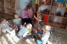 Самые маленькие и любознательные ребята в первой группе раннего возраста «Радуга»! Пришло время им познакомиться с музыкальным миром. Первое музыкальное занятие прошло с детьми раннего возраста. Ребята познакомились с шумовыми инструментами: маракасами, бубном, барабаном, бубенцами и колокольчиком....