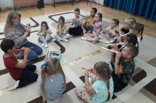 Музицирование – это самый яркий вид музыкальной деятельности. Ребенок обучается не только игре на музыкальных инструментах, но и начинает слушать других, чувствовать ритм. Развивается музыкальность и звуковысотный слух ребенка.На музыкальном занятии в подготовительной к школе группе №1 «Затейники» дети погрузились в музыкальный мир....
