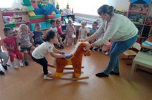 С целью приобщения детей к художественной литературе, воспитанники второй ранней группы «Сказка» знакомились с произведением Л.Н. Толстого «Был у Пети и у Миши конь». В процессе данной деятельности дети прослушали короткий рассказ, рассмотрели иллюстрации, инсценировали небольшой фрагмент произведения и с огромным удовольствием и интересом покатались на игрушке-качалке...