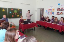 Информацией о детской общественной организации «Радуга», о воспитательной работе в школе, о направлениях и наиболее продуктивных формах, используемыхво всестороннем развитии личности школьникаподелились педагог-организатор Гришина Т.В.и заместитель директора по воспитательной работе Бочкарева Л.Н. Вниманию участников заседания были представлены: «Визитная карточка ДОО «Радуга», которая является участником Российского движения школьников; «Визитная карточка отряда «ЮИД», «Визитная карточка отряда «ДЮП». Затем,согласно листов распределения групп, был пройден маршрут «Мастер-класс «Азбука волана» - «Тренинг на сплочение коллектива» - «Мастер класс по декоративно-прикладному творчеству «Цветы для мамы».