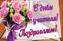 Уважаемые педагоги, поздравляем Вас с профессиональным праздником, Ваша профессия — это образец добродетели, человеколюбия и мудрости. Ваш каждодневный путь — это путь к сердцам подрастающего поколения, путь к вершинам знаний. Будьте здоровы, успешны, благополучны, творчески активны. Пусть благодарность Ваших учеников станет для Вас достойной наградой.