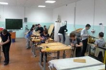 Обучающиеся объединения «Умелые руки» на занятии своми руками изготовливают полки для одежды.