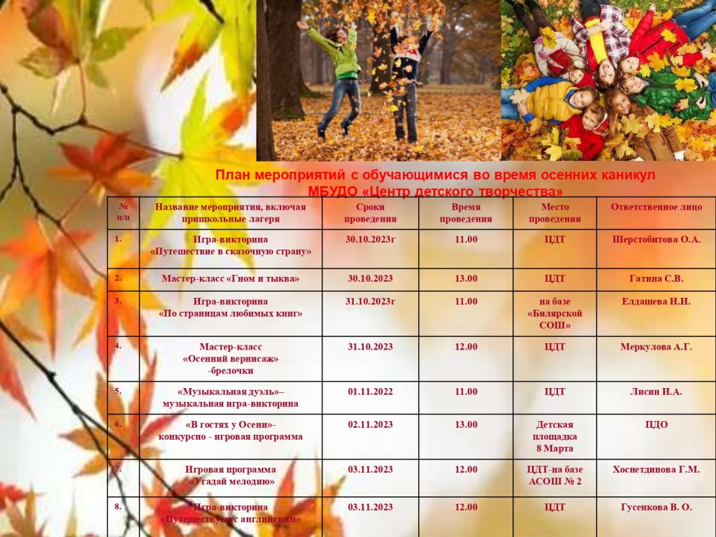 В конце октября для обучающихся Центра детского творчества проводятся конкурсно-игровые программы под названием «Осень в гости к нам пришла».