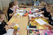 В объединении "Мир красок" (педагог Гатина С.В.) Прошло итоговое занятие "Снежная семейка", в процессе творчества дети показали свои знания о пейзаже, о правилах композиции и совершенствовали умение работать гуашью, рисунки получились яркие и выразительные.