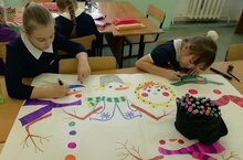 Дети объединения «Кудесники (педагог Стычева А.С.) готовятся к новогодним праздникам. Самостоятельно рисуют и изготавливают декорации для украшения кабинета.
