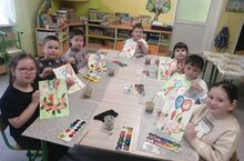 В объединениях «Семицветик» и «Мир красок» (педагог Гатина С.В.) прошли тематические занятия, беседы о празднике, в итоге которых дети нарисовали праздничные открытки.