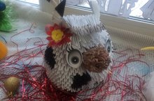 Обучающиеся объединения «Мир красок» под руководством Гатиной С.В., а так же их родители приняли участие в конкурсе на лучшее оформление кабинета «Светлый праздник у ворот, мы встречаем Новый год». Семья Акиновых сделали новогоднего бычка, семья Сираевых вырезали и склеили модульные снежинки из бумаги.