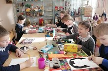 Вот и сегодня, в преддверии праздника, учащиеся объединения "Кудесники" (педагог Стычева А.С.) оживлённо готовили праздничные открытки для своих любимых мам. -